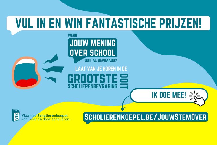 Onze online bevraging is te vinden via scholierenkoepel.be/JouwStemOver en dat tot 20 april.